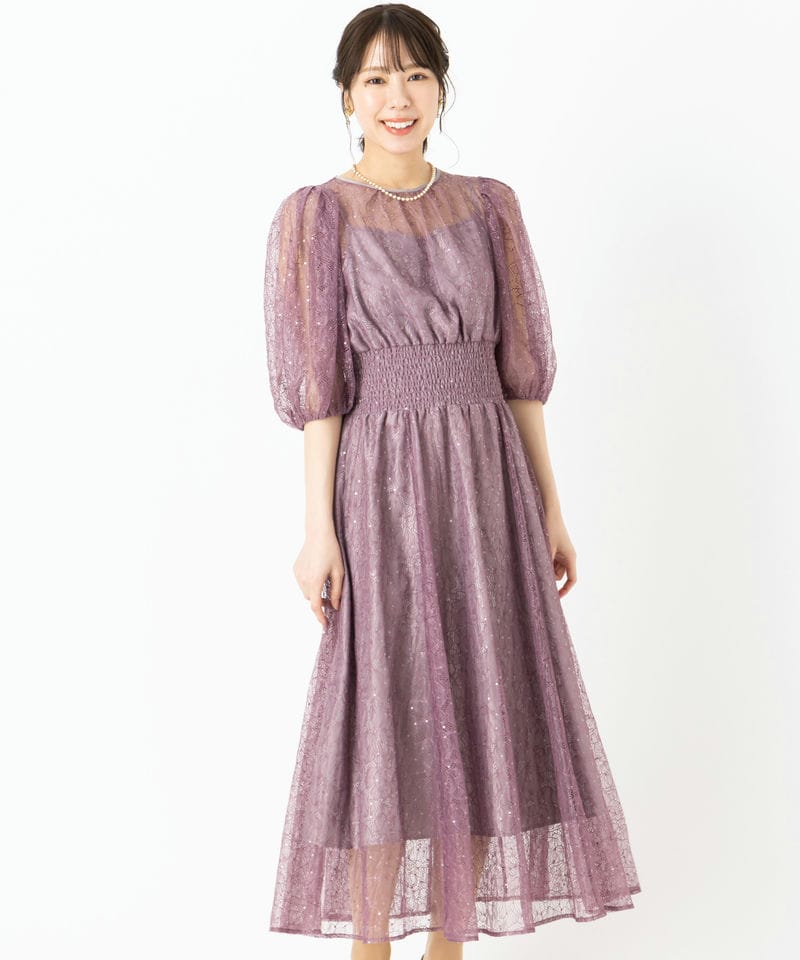 | 夜 | ラメ入りなど華やかなで露出のあるデザイン デコルテなどは露出し、スカート丈は長め |