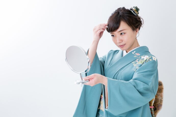 着物に合わせる帯締めや帯揚げ、髪飾りなどは金や銀をメインに選ぶとまとまりがでます。金・銀の小物は豪華さと品位を兼ね備えており、さまざまな色の着物と相性が良いです。